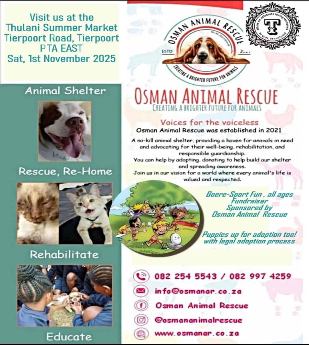 We attend events like dog shows and markets in order to sell fundraiser items as well as to advocate for animals in need.